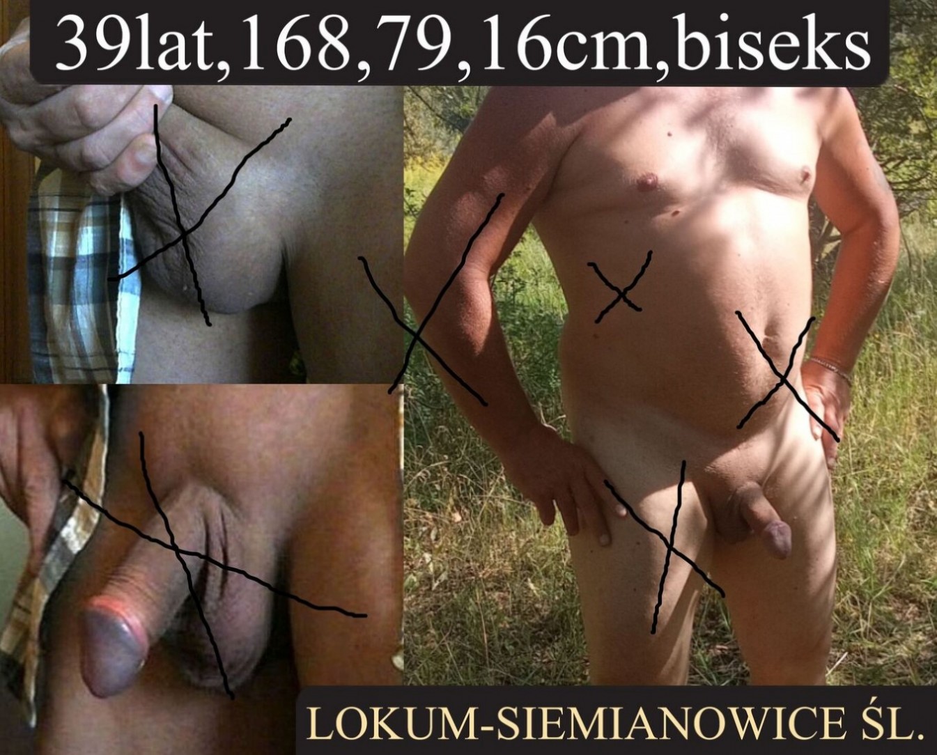 MAM DZIŚ LOKUM - tymczasowo w Siemianowicach Śl w godzinach 11 do 14.30 i zabawił bym się z kimś chętnie starszym,dojrzałym i wygolonym ( jajka,kutas) lub z małym zarostem. Lubię onan,macanie i lizanie jajek,obciąganie w różnych pozycjach,wytryski na siebie ,lizanie jaj w czasie wytrysku itp. Zabawa wspólnie lub ktoś komuś. Warunek zdrowie,higiena. Wiek do ok 67 lat.Ja zadbany biseks 39lat,wygolony. Może być też plener.FOTY MOJE.